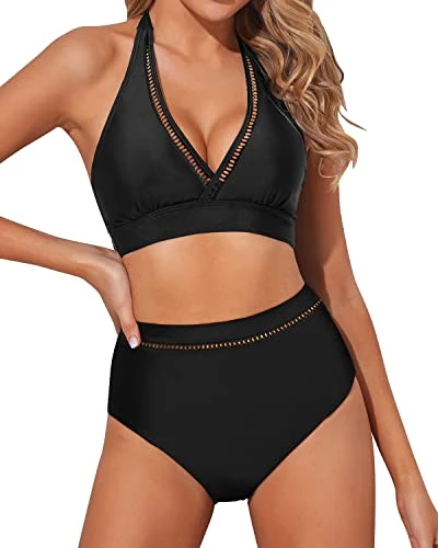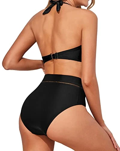 This two-piece swimsuit has a high-waisted bottom with tummy control and a bikini top with a push-up padded bra, halter tie, and sexy mesh design will make you look sexier.