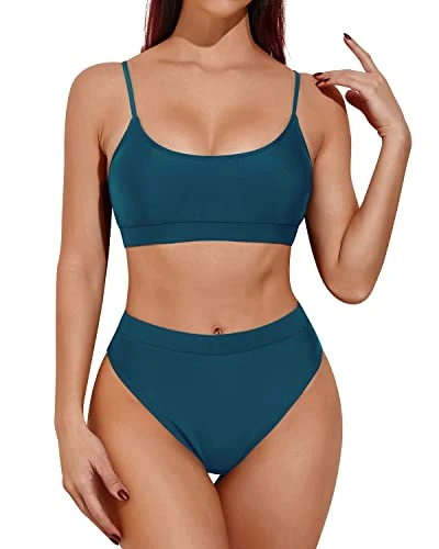 This thong bikini set is made from high-quality, comfortable material and features a flattering high cut bottom and sporty scoop neck.