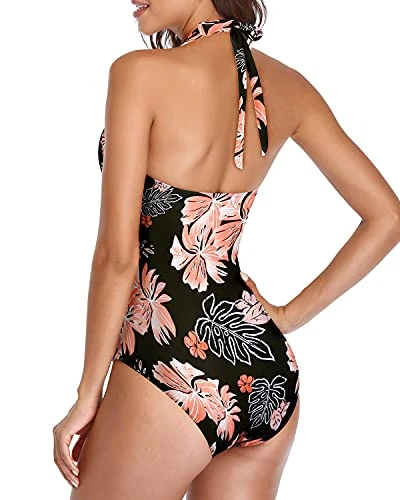 Look and feel your best in our Tummy Control Sexy Halter Ruched One Piece Swimsuit. Its long torso design and flattering ruched details offer a slimming effect, while its halter neck and push up bra provide support and shaping.