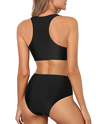 This two piece swimsuit set for teens girls is designed to flatter most curves with its sporty high neck tank top and comfortable, breathable fabric.