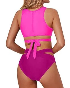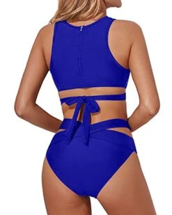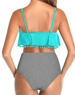 2 Piece Criss Cross Push Up Wrap Bikini Set High Waisted Bottom -Black And White Stripe