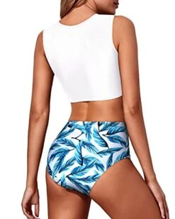 Cutout High Neck Criss Cross Bandage Two Piece Bikini Set For Women-Black And White Stripe