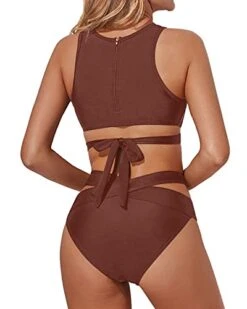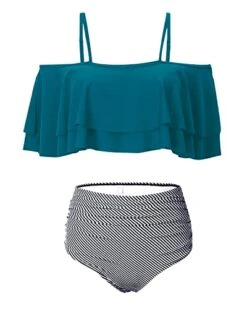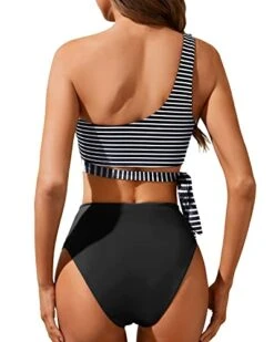 Stylish High Waisted Bikini Set Two Piece Triangle Bathing Suits-Black And White Stripe