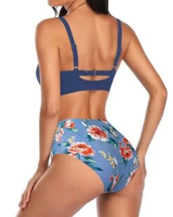 Summer Beachwear Two Piece Bikini Halter Top And Ruched High Waisted Bikini-Navy Blue