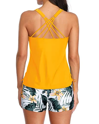 Get the perfect blend of style and comfort with this two piece tummy control athletic tankini swimsuit, featuring a V neck ruched front, adjustable shoulder straps, and high waisted boyshorts.