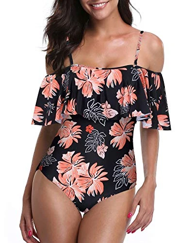 Hit the beach in style with this off shoulder swimsuit, designed with a flattering ruffle detail and versatile removable straps.