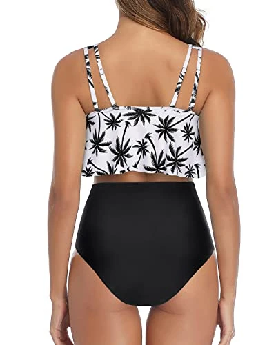Flaunt your curves in this ultra chic and slimming two piece bikini, boasting a ruffled flounce top with adjustable double straps, removable padded push up bras, and high waist ruched bottom with moderate cutting for tummy control and a soft silky touch feeling.