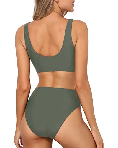 Look and feel your best at the beach with this sexy and sophisticated two piece bikini set, featuring a scoop neck crop top and high waisted bottoms that provide coverage and support.