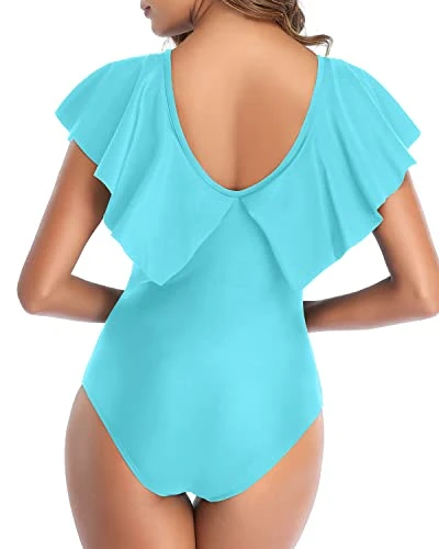 This high quality and comfortable ruffle flounce sleeve v neck tummy control one piece swimsuit is the ultimate blend of style and function.