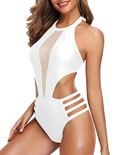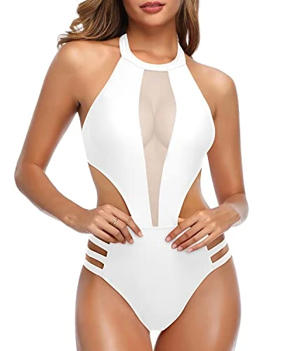 Turn heads in this stunning and glamorous high neck halter cutout monokini one piece mesh swimsuit, designed to make you feel like a true beach goddess.