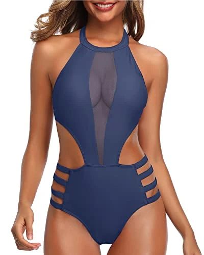 Elegantly Highlighting Curve Sexy One Piece Bathing Suit For Women-Blue