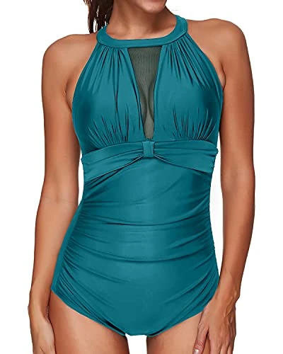 Elevate your swimwear collection with this women’s high neck plunge mesh ruched monokini, perfect for teen girls and flattering to any body type.