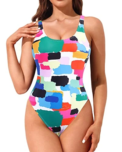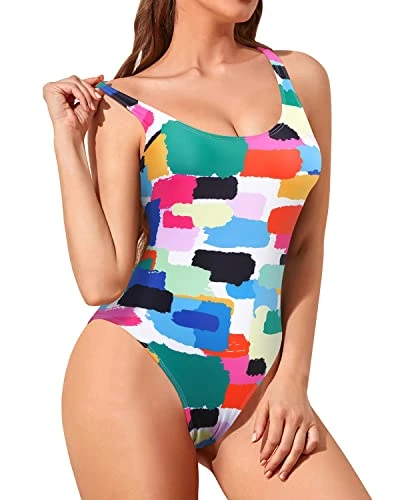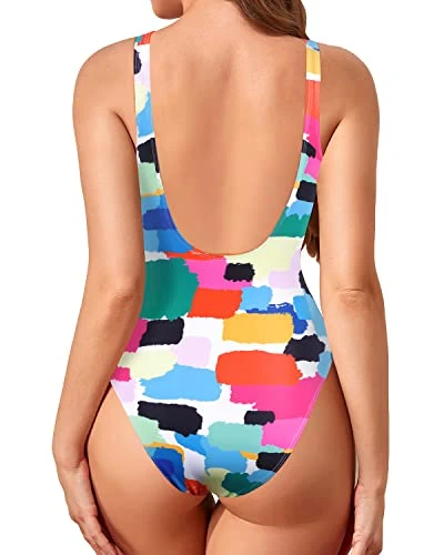 This retro-style one-piece swimsuit for women offers tummy control, a sexy scoop neck and low back design, high-cut legs for a flattering look, and a soft, removable padded push-up bra, all made from high-quality, breathable materials, suitable for swimming, beach parties, vacations, or daily wear.