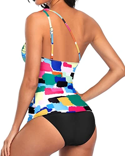 Stay comfortable and confident in our one shoulder tankini swimsuit, featuring a soft and stretchy material and removable padded bras for support.