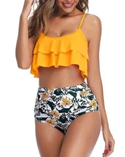 Flounced Two Piece Tummy Control Swimsuits For Women Tummy Control Bikini Sets-Black And White Snake Print