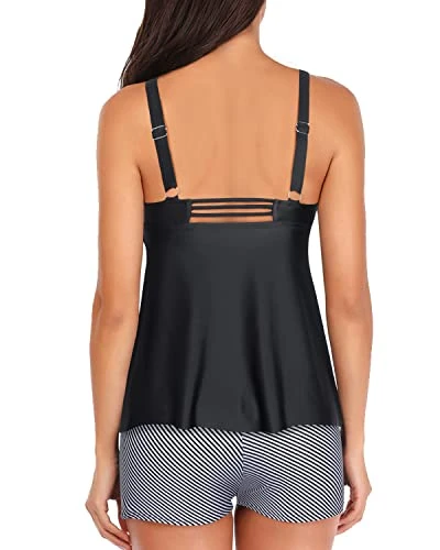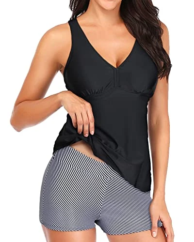Stay comfortable and confident in the water with these high-quality tankini swimsuits, complete with adjustable straps, padded push up bra, and full-coverage boyshort bottoms.