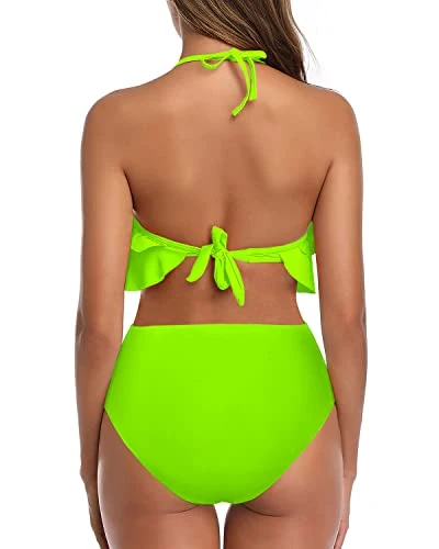 This well-made and high-quality halter bikini set is both stylish and functional, featuring a removable padded bra and no see-through material for added convenience.