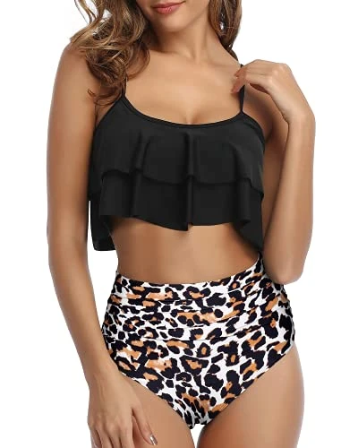 Embrace your body shape with confidence in this moderate coverage ruffle high waisted bikini that features a front and side ruched design to flatten your tummy.