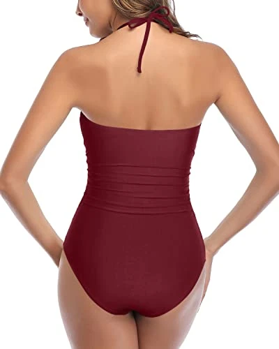 Stand out from the crowd in this chic and stylish Cutout Tummy Control High Waisted Halter One Piece swimsuit, featuring a retro design and flattering shirring on the side.