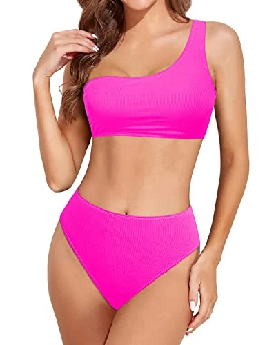 Look and feel confident on the beach with this one shoulder high waisted high cut bikini set that offers comfort, style and support in one perfect package.