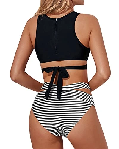 Look and feel your best in this sexy and comfortable high neck cutout bikini set, featuring a supportive push-up bra and an adjustable tie waist for a flattering fit.