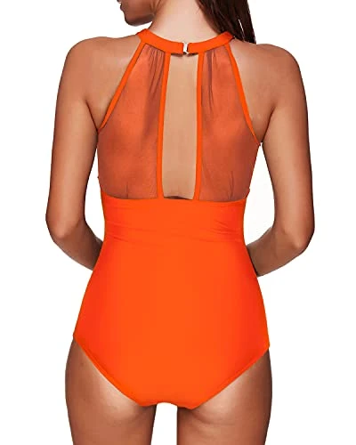 Upgrade your swimwear game with this high neck plunge mesh ruched monokini, featuring a chic design and flattering ruched pattern in the torso.