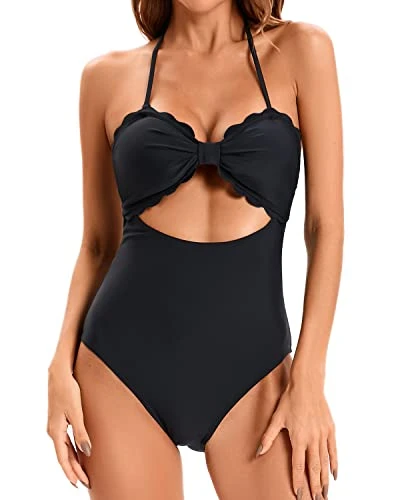 Be beach ready with our Cutout Halter Sexy Scalloped One Piece Swimsuit, featuring a youthful cutout and scalloped design for a cute and sexy look.