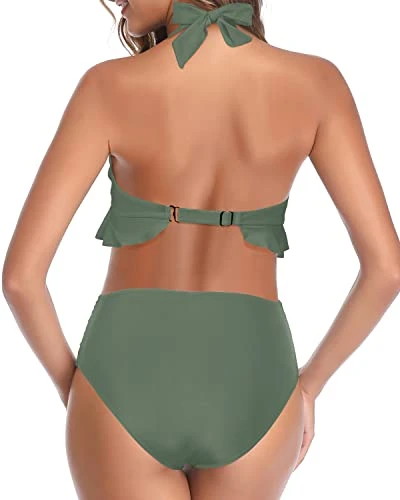 Get ready to hit the beach in style with this stunning High Waisted Push Up Ruffle Tummy Control Bikini Set for women, featuring a backless design and adjustable halter neck. With a retro-inspired flounce longline top and ruched high waisted bottom for maximum tummy control, this vintage bathing suit set is perfect for girls, teens, and ladies looking to make a splash this season.