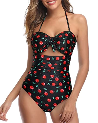Get ready to feel amazing in this Cutout Tummy Control High Waisted Halter One Piece swimwear featuring a retro design with shirring on the side, tie-up closure, removable and adjustable halter straps, and a backless design, perfect for your beach vacation, pool swimming, Hawaii, or honeymoon.
