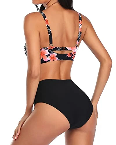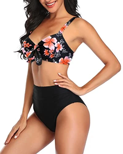 Flaunt your figure with this comfortable and durable two-piece swimsuit set for women, consisting of a high waisted bikini with ruched tummy control effect and a removable padded push up top with a tie knot front and clasp hook closure, made of soft and stretchy smooth fabric that is perfect for water activities.
