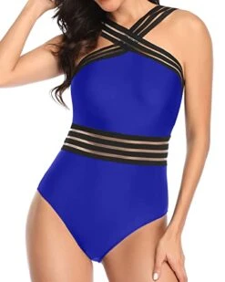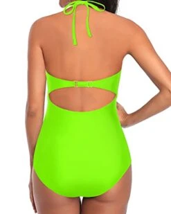 Women’s Tummy Control Ruffled One Piece Swimsuit-Neon Orange