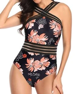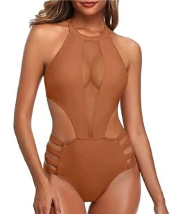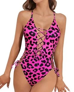 Sexy Lace Up One Piece Bathing Suits Deep Plunge V Neck Womens 1 Piece Swimsuits-Pink Leopard
