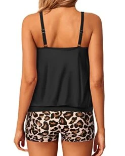 Full Coverage High Waist Bikini Sporty Two Piece Swimsuits-Black And White Cow Pattern1