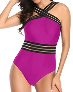 Shoulder Curve Perfectly One Piece Front Crossover Swimwear-Hot Pink