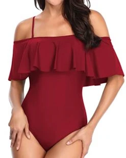Vintage Off Shoulder Ruffled Bathing Suits Padded Bras-Neon Yellow