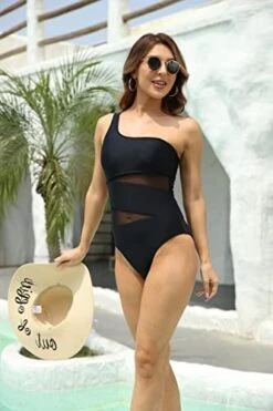 Sexy Two Piece Tankini Bathing Suits One Shoulder Swim Top Shorts Swimsuits-Black Pink Flowers
