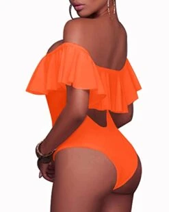 Gorgeous Removable Strap Off The Shoulder One Piece Swimsuit For Juniors-Neon Orange