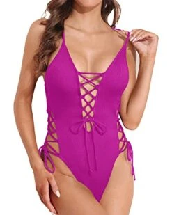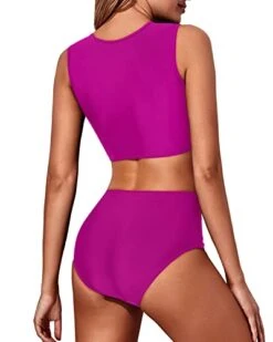 High Waisted Two Piece Bathing Suit Tie Bikini Set-Neon Pink