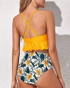 Women’s Charming Ruched Bottom Bikini Swimsuit-Yellow Floral