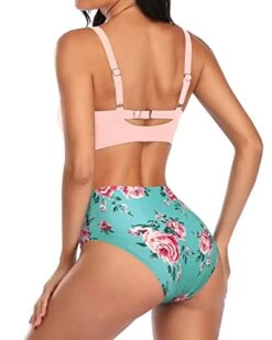 Tummy Control & Slimming High Waisted Bikini Sporty Scoop Neck Swimsuits-Light Blue And Light Green
