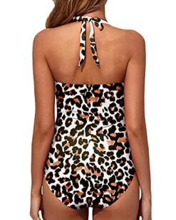 Summer Beachwear Two Piece Bikini Halter Top And Ruched High Waisted Bikini-Navy Blue
