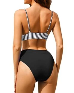 Stylish High Waisted Bikini Set Two Piece Triangle Bathing Suits-Black And White Stripe