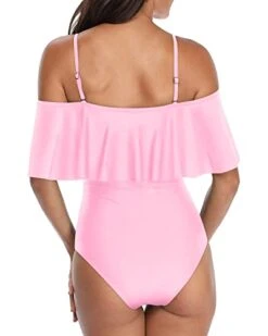 Women’s Slimming Off Shoulder One Piece Bathing Suits-Pink And Black