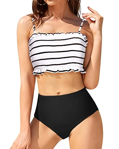 Look effortlessly chic in this cute and stylish Bandeau Bikini, with an adjustable shoulder strap design, high cut bottoms, and off-shoulder top for a flattering silhouette.
