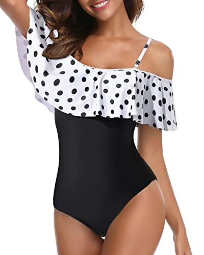 Get the perfect fit and look with this ruffle one-piece off-shoulder swimsuit, featuring removable shoulder straps, tummy control, and a charming flounce design that flatters your figure and enhances your curves, perfect for any beach or poolside activity.
