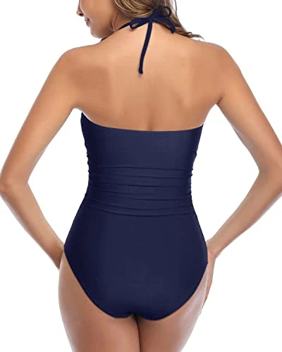 Step out in style with our Sexy Cutout High Waisted Halter Front Tie Knot One Piece Swimsuits, featuring shirring, tummy control, and a backless design for a chic and fashionable beach look.