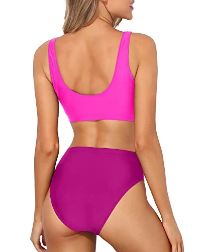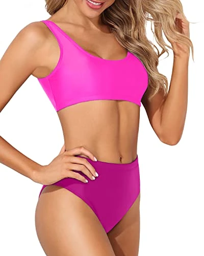 Get ready for summer in this trendy two-piece bikini set, complete with a sporty scoop neck crop top and a high waisted bottom that flatters your figure and stretches your torso, perfect for beach trips, pool parties, and more.