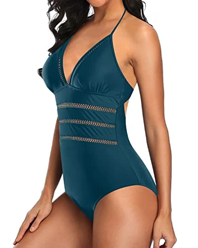Look stunning and feel confident in this flattering one piece swimwear, designed with a plunging neckline and backless style.