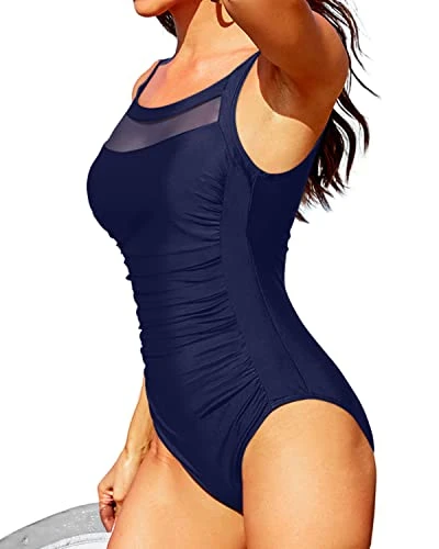These swimsuits feature comfortable wide shoulder straps, padded push up bras for support and shape, see-through mesh design for added sexiness, and ruched tummy control for a slimming and charming look.