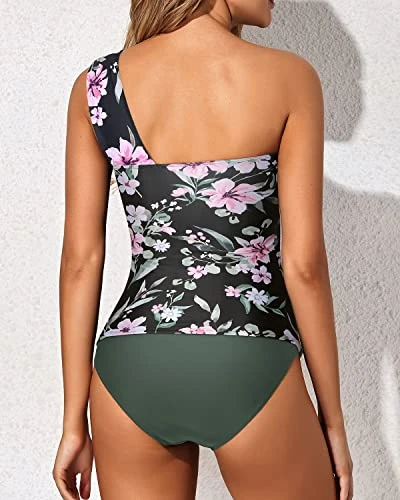 Get ready to soak up the sun in this backless one shoulder tankini set, made with high-quality and stretchy material for maximum comfort.